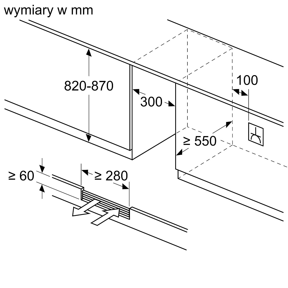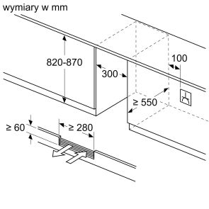 - Maksymalna wysokość niszy: 820 mm