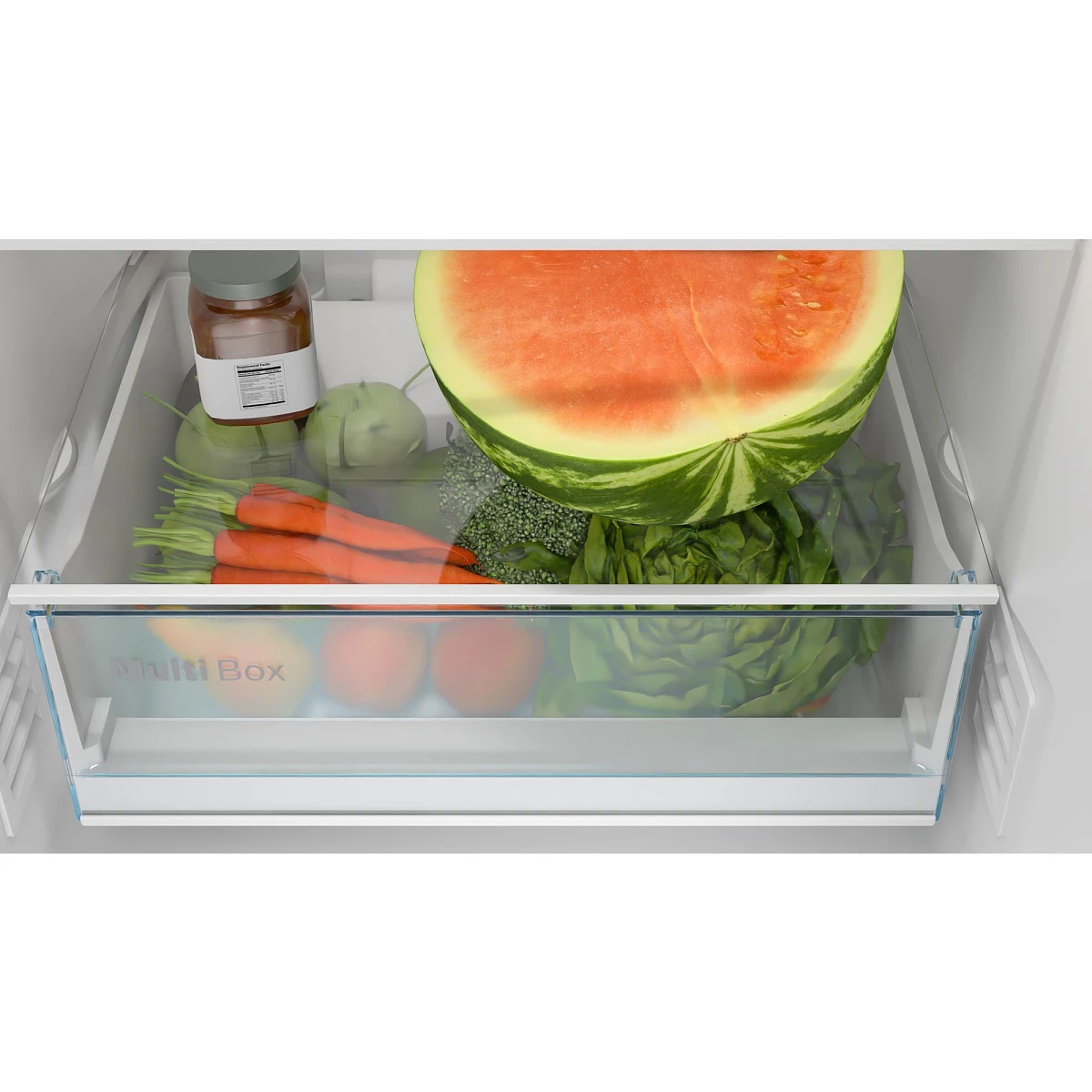 - 1 MultiBox - przezroczysta szuflada z falowanym dnem doskonałe miejsce do przechowywania owoców i warzyw.