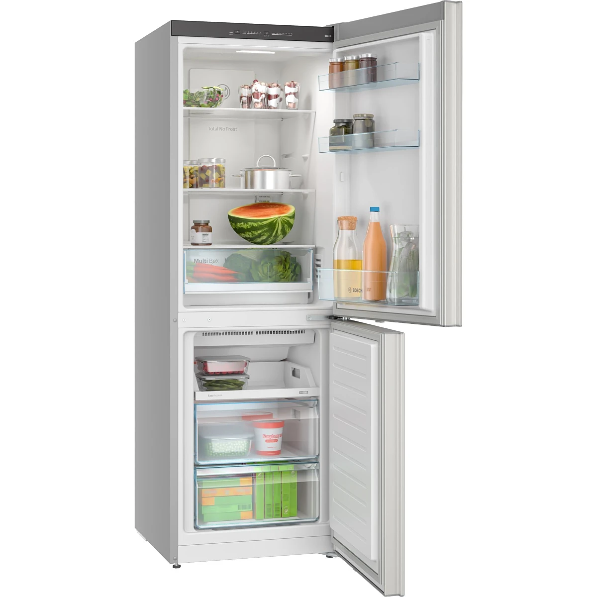 Dzięki technologii Total No Frost zapomnij o rozmrażaniu zamrażarki. Odprowadza wilgoć i utrzymuje suche powietrze, zapobiegając tworzeniu się szronu na ściankach i żywności. Dotyczy to również obszaru lodówki. Pożegnaj się z kroplami wody i tworzeniem się lodu na tylnej ścianie. Nie tylko oszczędza to kłopotliwego rozmrażania czy czyszczenia, ale także sprawia, że urządzenie jest bardziej energooszczędne.