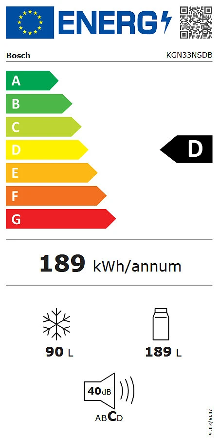 - Klasa efektywności energetycznej D w skali od A do G