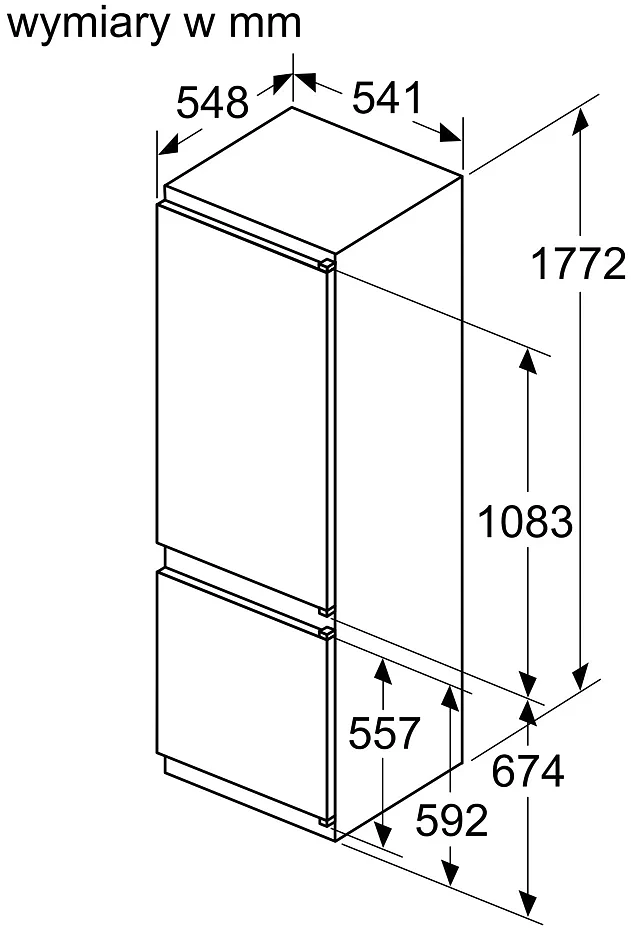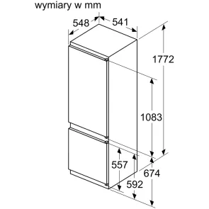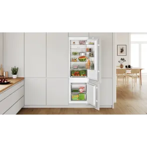 Lodówka przeznaczona jest do montażu w meblach kuchennych. Dzięki temu, że jest całkowicie ukryta za frontem meblowym, doskonale wkomponuje się w każde pomieszczenie kuchenne. Lodówka jest średniej wielkości, dlatego spełni potrzeby singla, dwóch osób lub rodziny 2 + 1. Klasa efektywności energetycznej w optymalnym zakresie według najnowszych norm UE pozwala zużywać mniej prądu niż przy modelach takiej samej jakości, ale w niższych klasach.