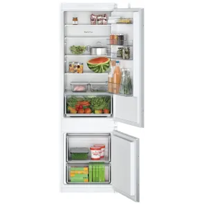 Lodówka Bosch KIV87NSE0 to zaawansowane urządzenie o pojemności 270 litrów, które idealnie sprawdzi się w każdej kuchni. Wyposażona w technologię Low Frost minimalizuje tworzenie się szronu, co ułatwia utrzymanie jej w czystości. Dzięki wbudowanemu oświetleniu LED oraz pojemnej komorze MultiBox, przechowywanie żywności staje się niezwykle wygodne i efektywne. Szerokość lodówki wynosząca 54 cm pozwala na łatwe dopasowanie jej do różnych układów kuchennych.