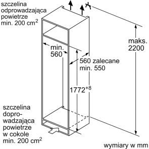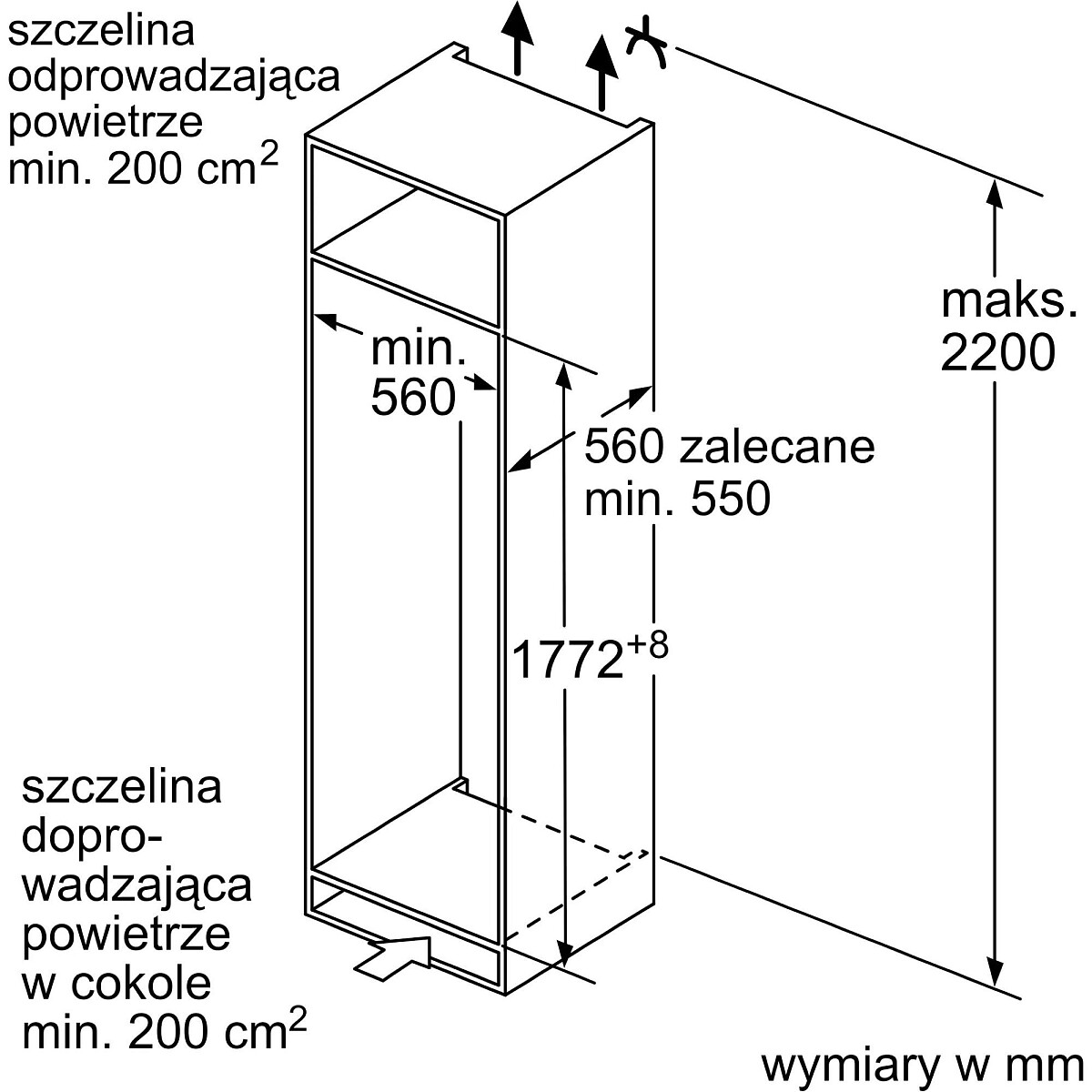 - Wymiary niszy do zabudowy W x S x G: 177.5 cm x 56.0 cm x 55.0 cm