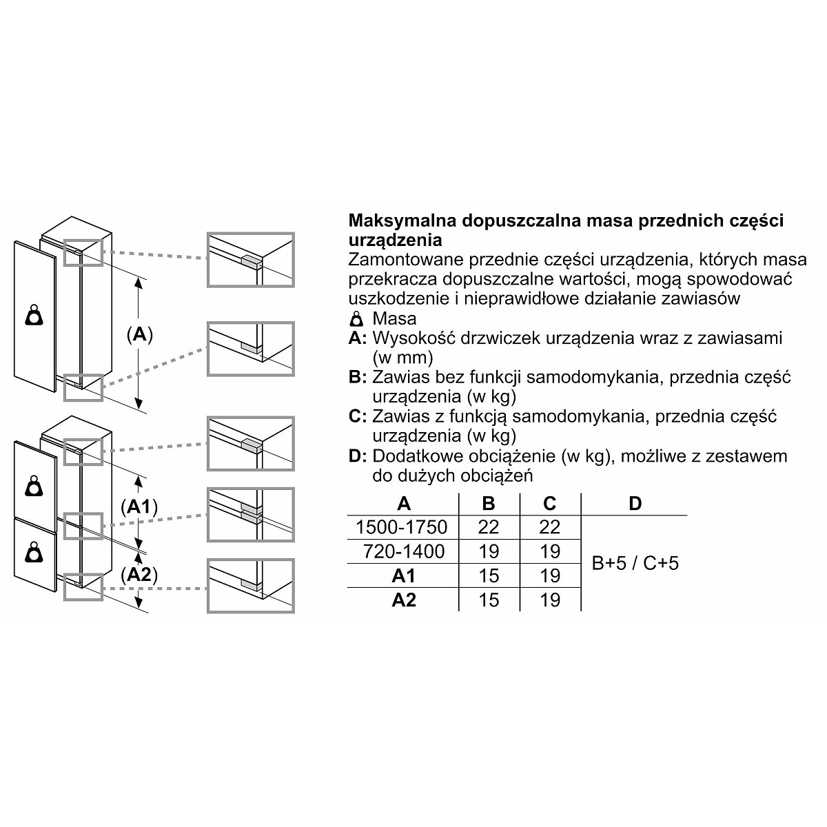 - Typ: Lodówka z dolnym zamrażalnikiem do zabudowy