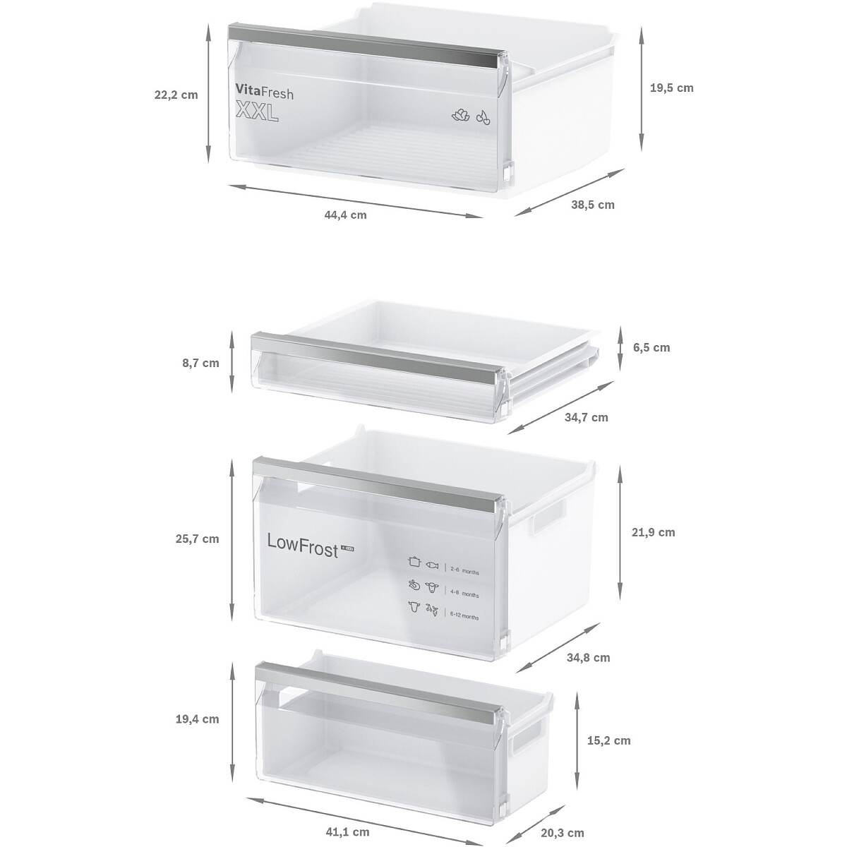 - Ilość przezroczystych szuflad na mrożonki: 3, w tym 1 BigBox