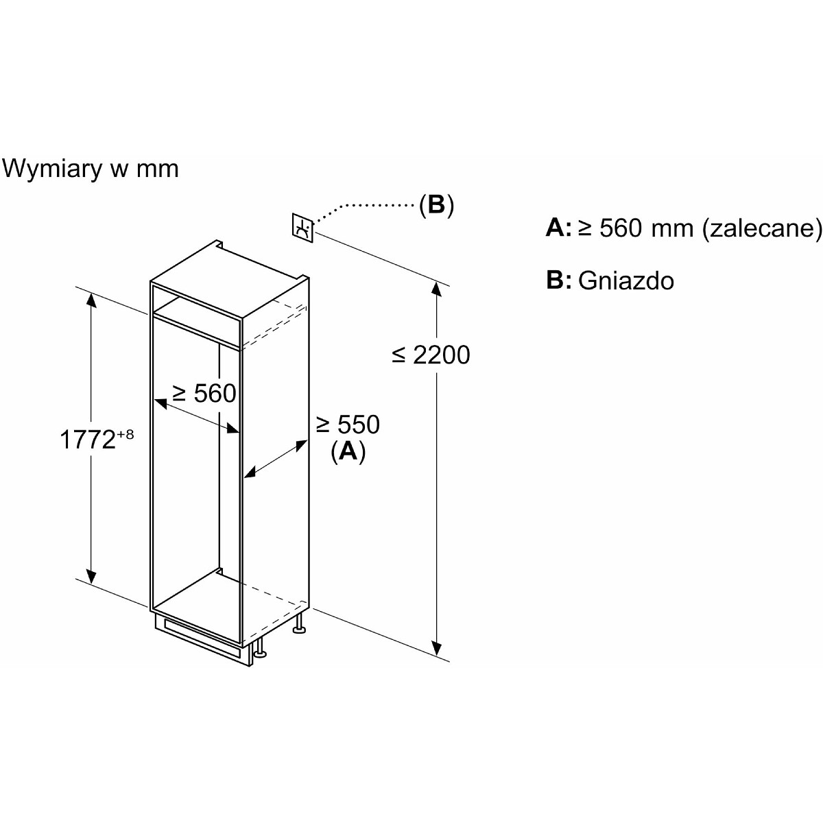 - Wymiary niszy do zabudowy W x S x G: 177.5 cm x 56.0 cm x 55.0 cm