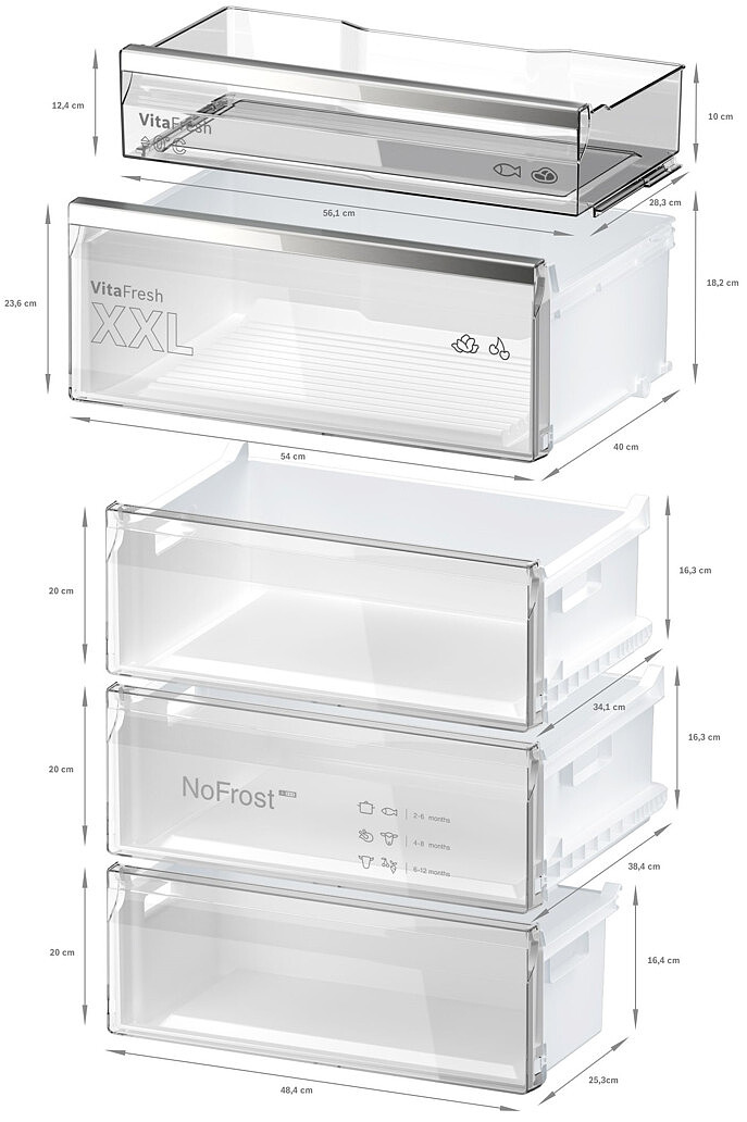 Technologie producentaTotal No Frost, VitaFresh, VitaFresh Plus, Metal Backwall, Flex Interior