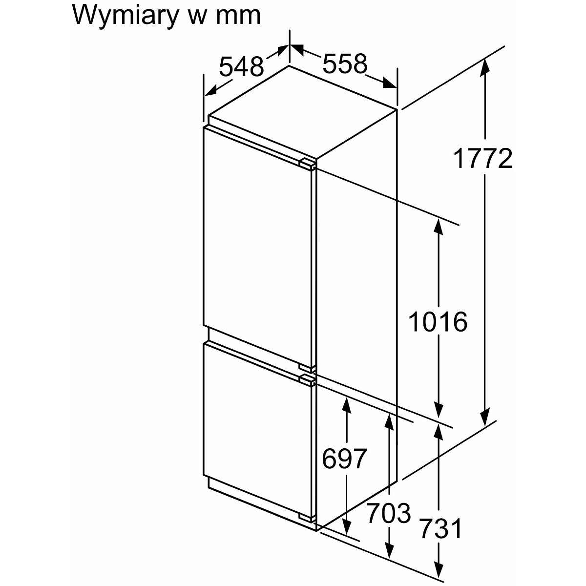 - Typ: Lodówka z dolnym zamrażalnikiem do zabudowy