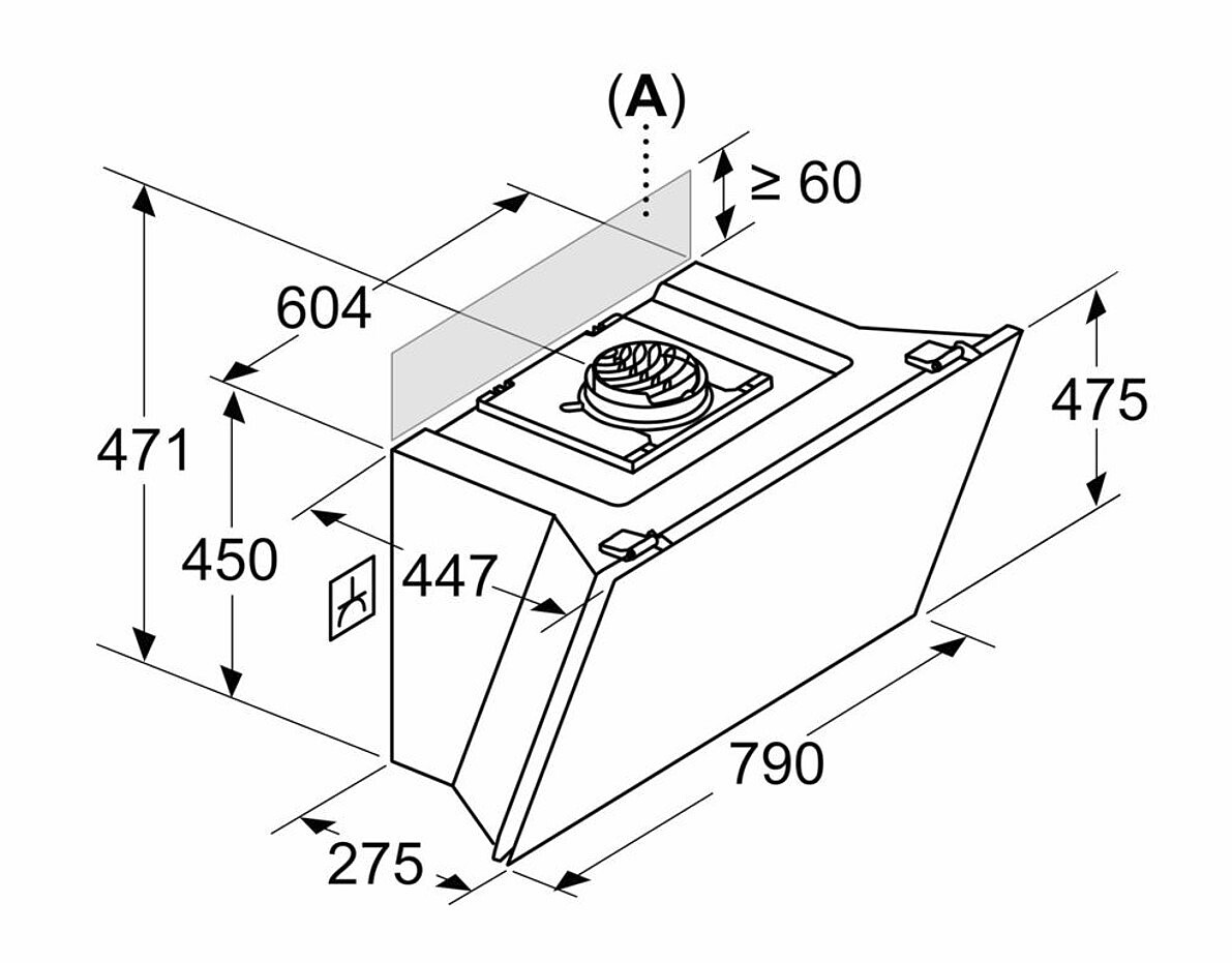 - Minimalna odległość od płyty elektrycznej: 450 mm