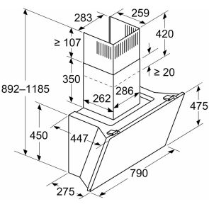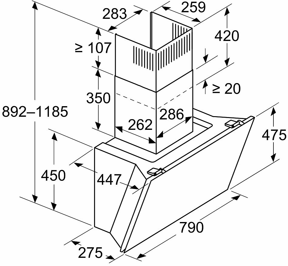 - Wysokość minimalna urządzenia obieg zamknięty: 892 mm