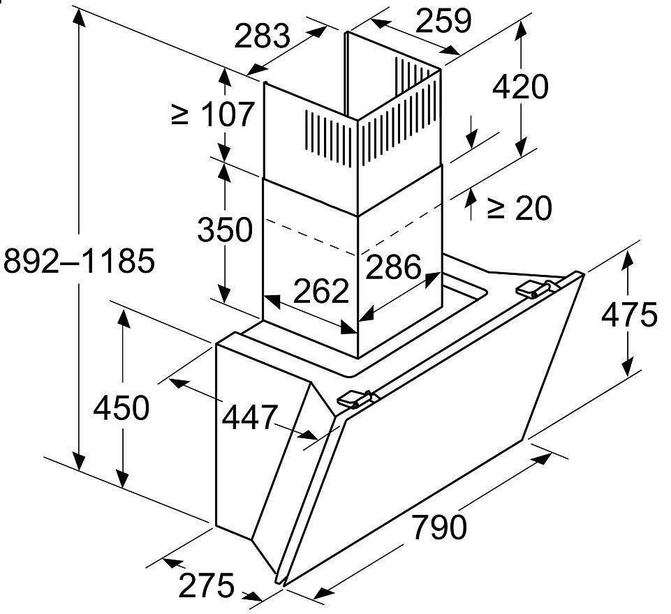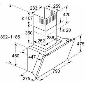 - Wysokość minimalna urządzenia obieg zamknięty: 892 mm
