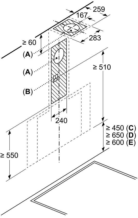 - Minimalna odległość od płyty elektrycznej: 450 mm
