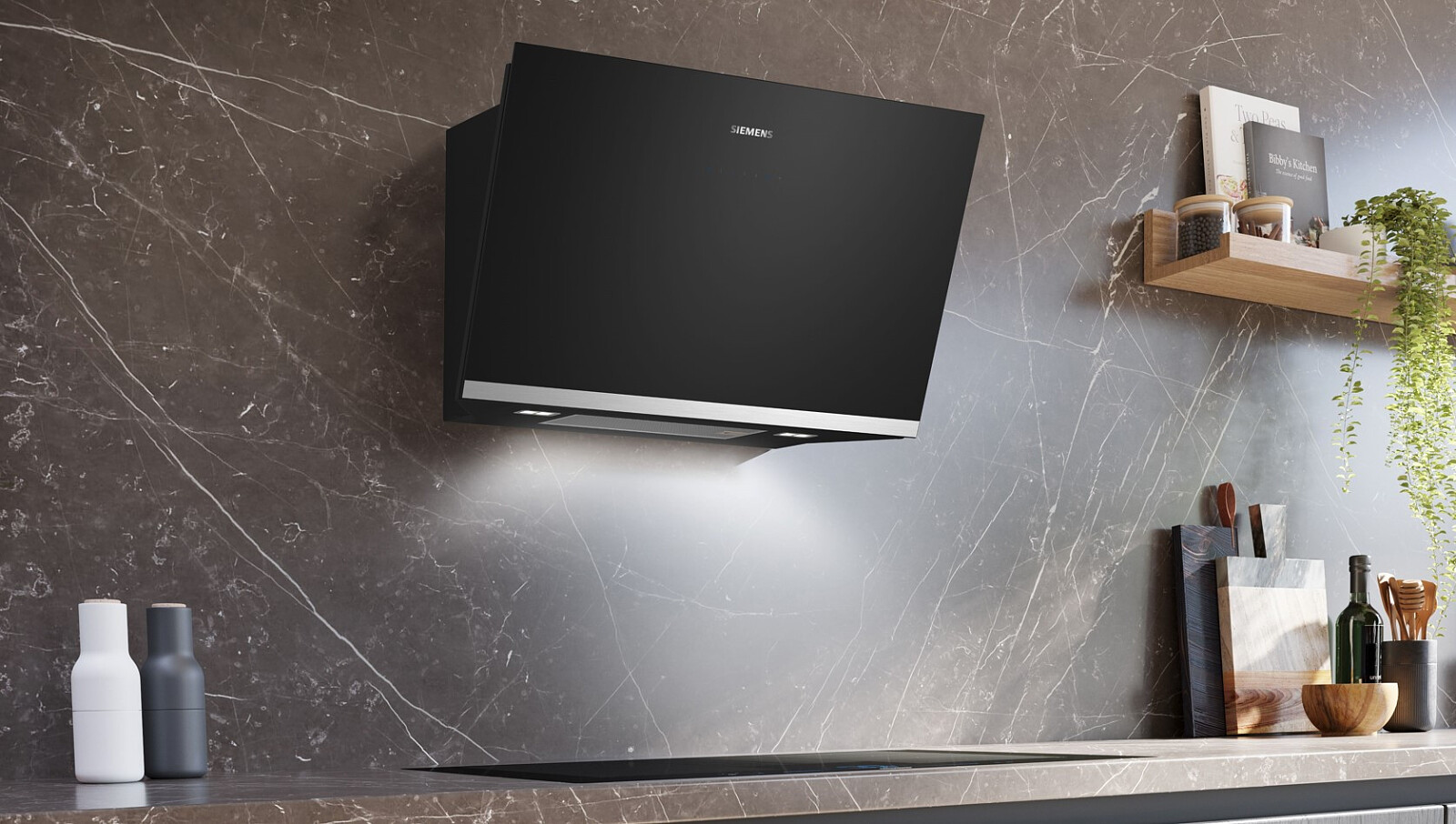 Dzięki naszemu partnerstwu z Amazon Alexa* Twój okap może działać jak inteligentny asystent. Zyskaj wolne ręce do gotowania i używaj Siemens Home Connect do obsługi okapu. Dostosuj moc. Zmień oświetlenie. Masz z nim stały kontakt z dowolnego miejsca w domu. *W zależności od lokalnej dostępności.