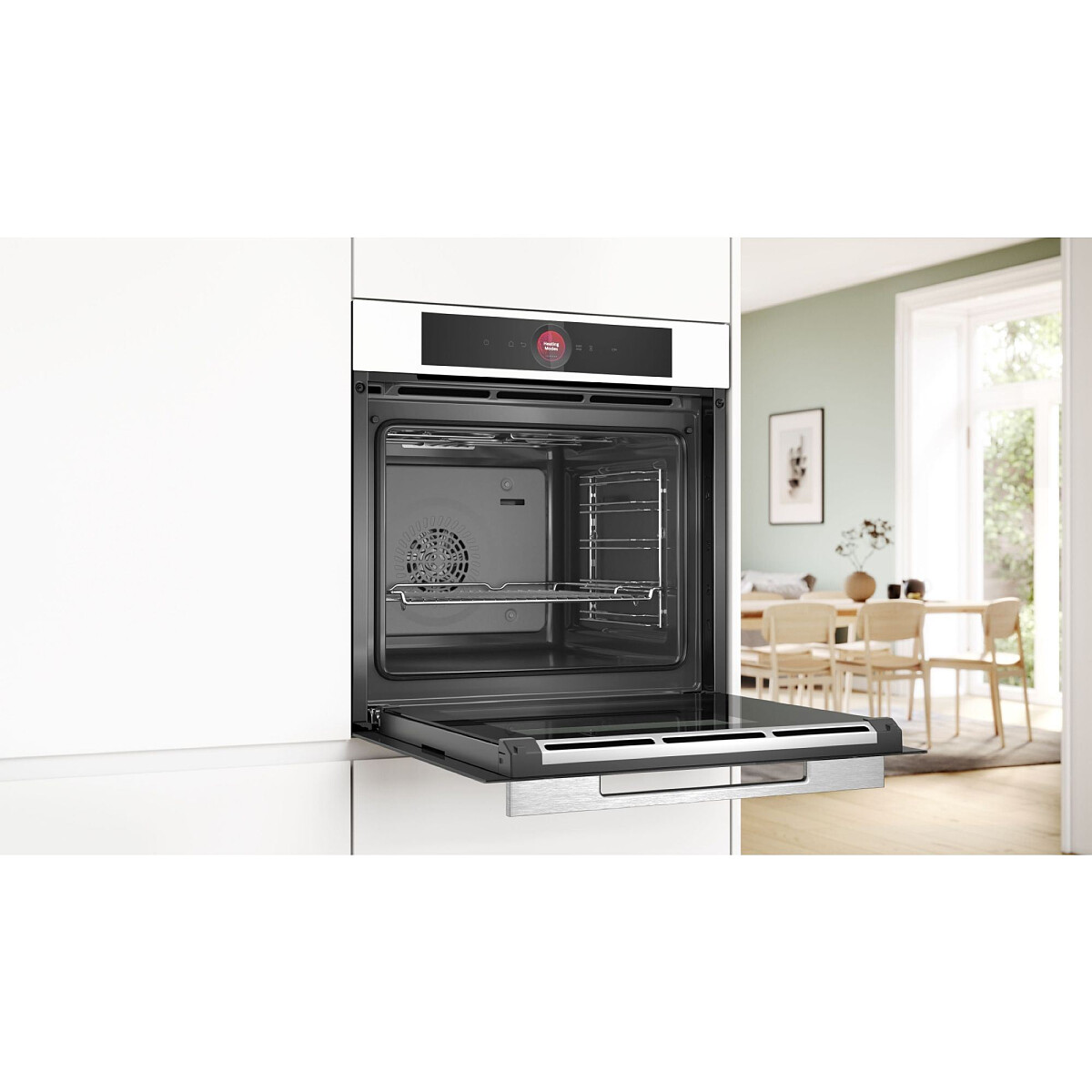 Innowacyjny cyfrowy pierścień sterujący sprawia, że gotowanie jest łatwiejsze niż kiedykolwiek. Przy pomocy niewielkich obrotów wewnętrznego pierścienia możesz uzyskać dowolne ustawienia swojego piekarnika, używając zaledwie jednego palca. Pomocą służy Ci duży panel dotykowy TFT o wysokiej rozdzielczości, z czytelnym tekstem i przyciskami sensorycznymi. Wyraźne obrazy oraz komunikaty tekstowe prowadzą Cię przez każdy krok, gdy nawigujesz pomiędzy opcjami różnych programów. Dzięki temu masz wszystko na oku i w pełni panujesz nad działaniem piekarnika.