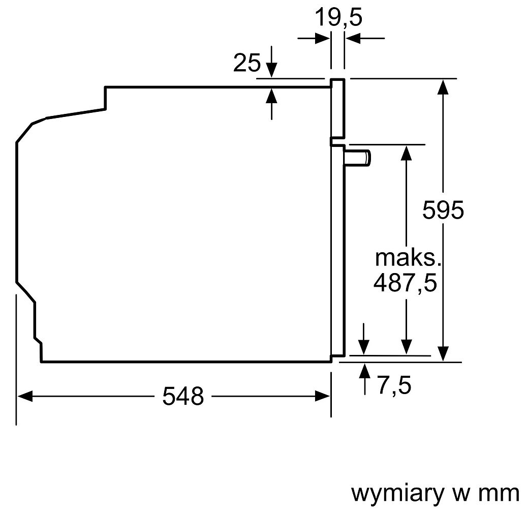 - Wymiary niszy (WxSxG): 585 mm - 595 mm x 560 mm - 568 mm x 550 mm