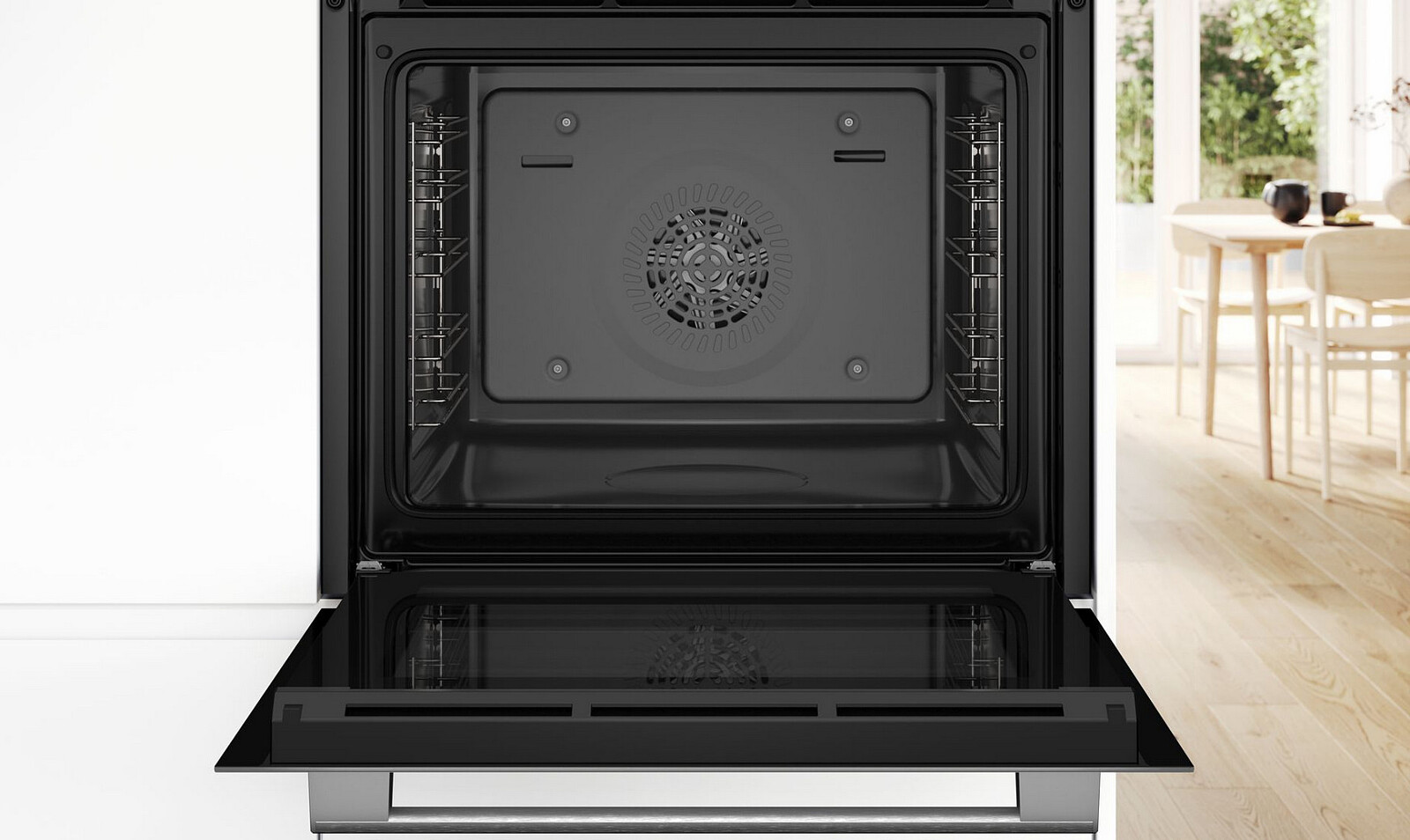 Chcesz oszczędzać energię podczas gotowania? Dzięki delikatnemu termoobiegowi ulepszyliśmy tryb ogrzewania, który jest najczęściej używany w gospodarstwach domowych. Wentylator rozprowadza ciepło równomiernie w całej komorze piekarnika, co pomaga oszczędzać energię. W przypadku pieczenia na jednym poziomie – np. małych wypieków, ciast w foremkach lub ciast na blasze do pieczenia – podgrzewanie nie jest konieczne.