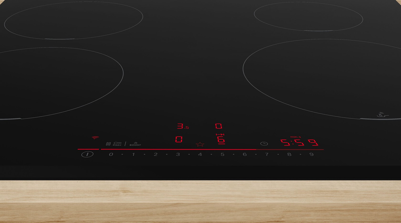 - Home Connect zdalny monitoring i kontrola: sprawdź, czy wyłączyłeś płytę będąc poza domem, znajdź pzepisy kulinarne oraz dodatkowe funkcje w aplikacji Home Connect.