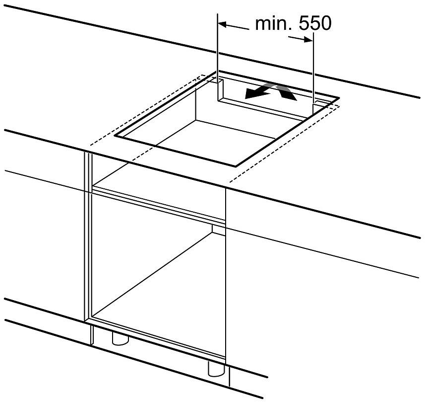 - Wymagane wymiary montażowe wnęki (WxSxG mm) : 51 x 560 x (490 - 500)