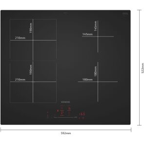 - Wielkość i moc strefy grzewczej: strona lewa, przednia: 190 mm, 210 mm, 2.5 kW (maks. moc 3.7 kW)