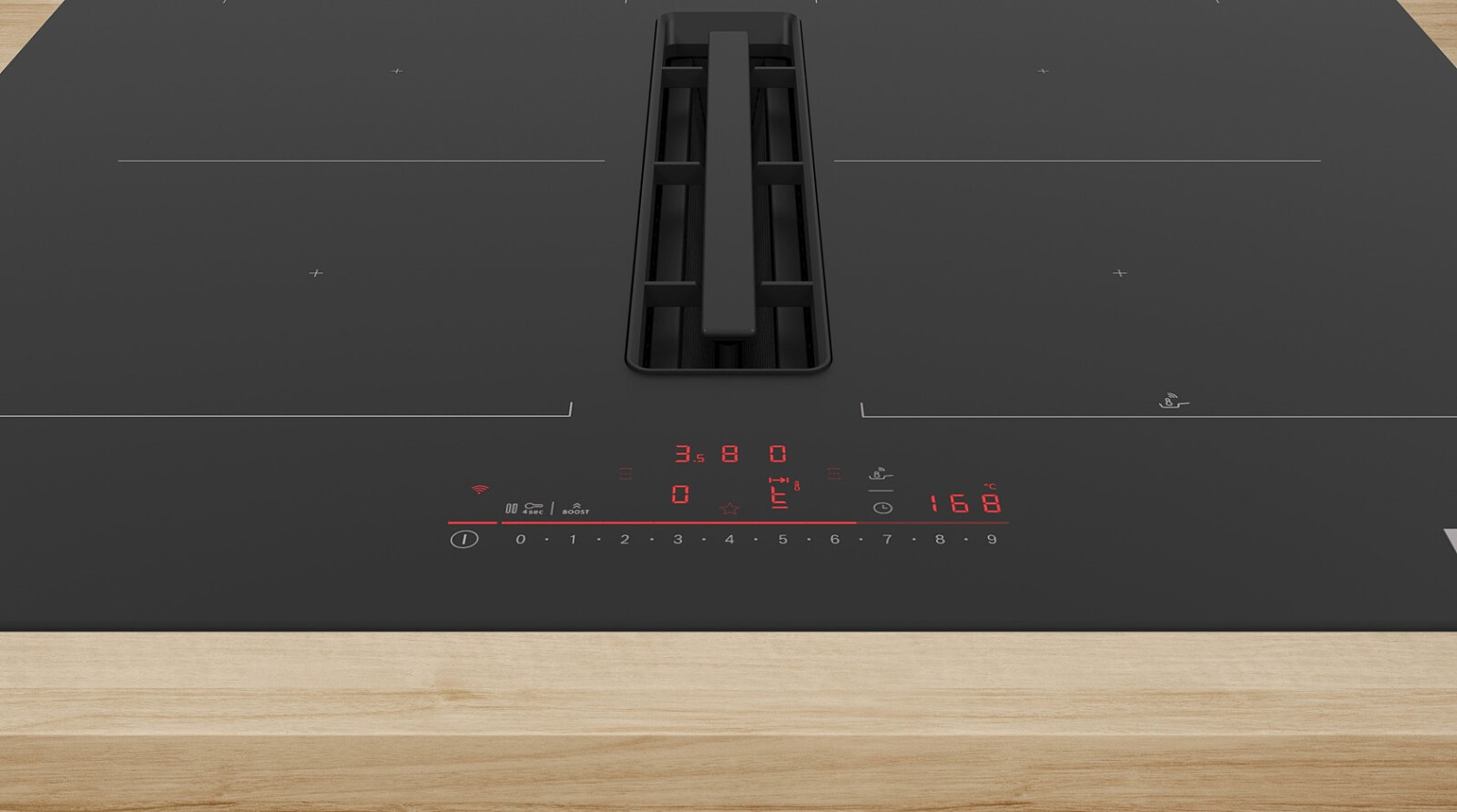 Płyta grzewcza zintegrowana z wyciągiem łączy w sobie najlepsze cechy naszych płyt indukcyjnych i okapów kuchennych. Wbudowany w powierzchnię płyty kuchennej wyciąg od razu odprowadza zapachy oraz opary powstające podczas gotowania. W ten sposób nie potrzebujesz oddzielnego okapu i zyskujesz więcej miejsca na szafki – albo masz lepszy widok na całą kuchnię.
