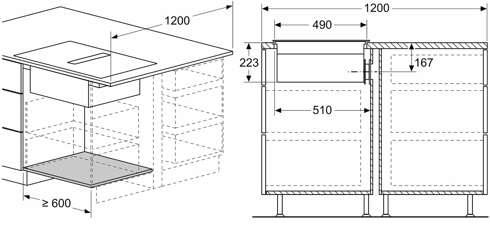 - Minimalna wysokość instalacyjna (mm): 490 mm