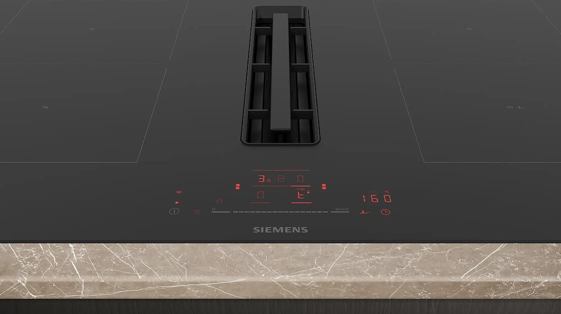 Siemens iQ500 ED811HQ26E to zaawansowana płyta indukcyjna z wyciągiem. Wyposażona w 4 pola grzewcze, 17 poziomów mocy oraz funkcję boostera. Zintegrowany wyciąg skutecznie pochłania zanieczyszczenia. Bezramkowa, elegancka konstrukcja w kolorze czarnym. Bezpieczna dzięki wskaźnikowi ciepła i zabezpieczeniu przed dziećmi. Kompatybilna z technologią Home Connect.