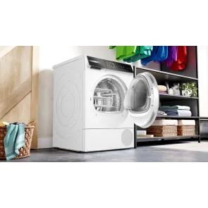 Innowacyjna technologia pompy ciepła, zastosowana w suszarkach Bosch to gwarancja delikatnego i energooszczędnego suszenia. Dzięki zastosowanym rozwiązaniom, tkaniny suszone są w niższej temperaturze w porównaniu z suszarkami konwencjonalnymi. Zastosowanie pompy ciepła umożliwiło również znaczące obniżenie poboru energii elektrycznej wykorzystywanej w procesie suszenia. W suszarkach Bosch z pompą ciepła, ubrania traktowane są wyjątkowo delikatnie, podobnie jak nasz budżet.