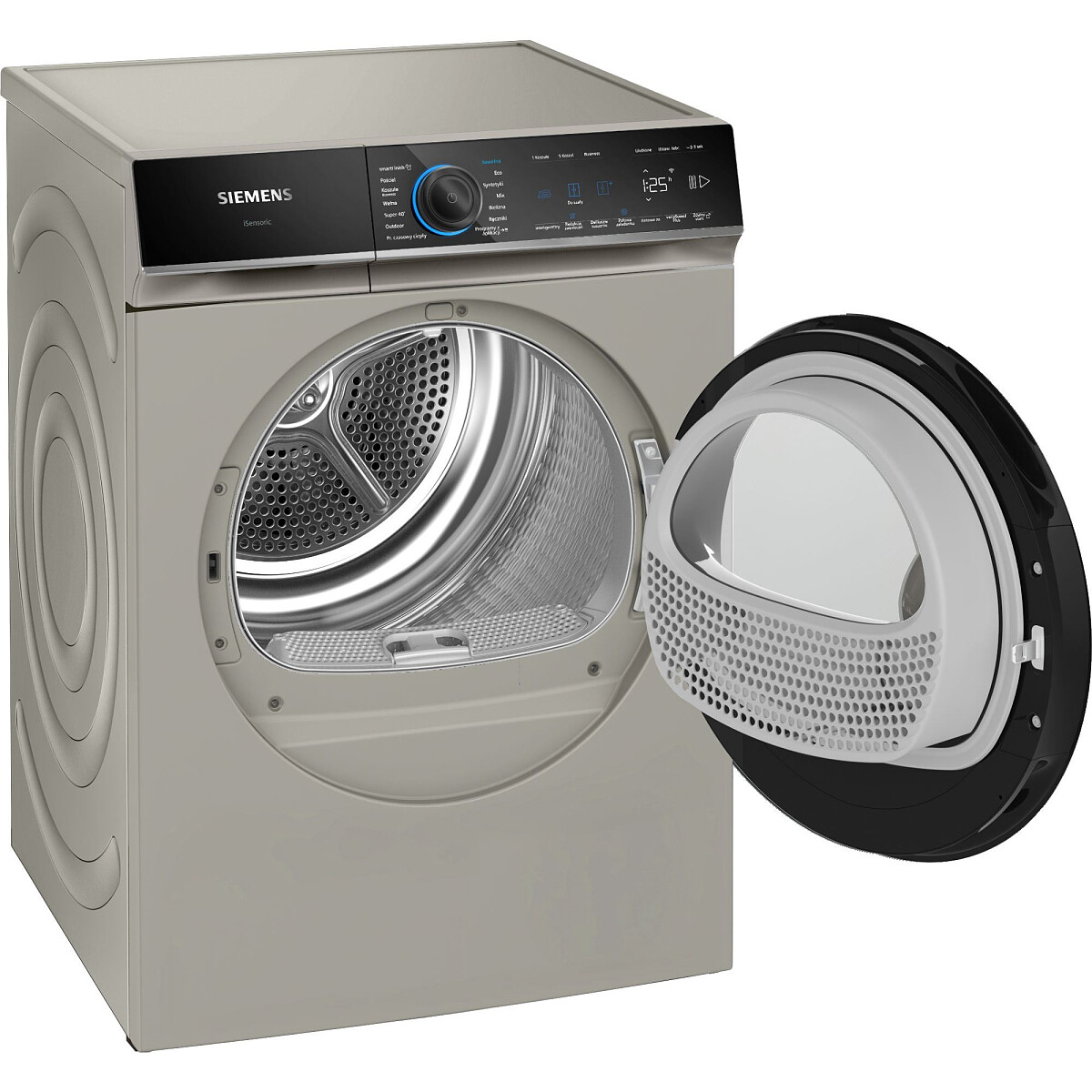 Odkryj wyjątkową suszarkę Siemens iQ700 WR47B2CXPL o pojemności 9 kg i technologii pompy ciepła! Srebrny inox z klasą energetyczną A, oferuje aż 14 programów, w tym delikatne, antyalergiczne oraz szybki 40'. Zdalne sterowanie i oświetlenie LED gwarantują komfort użytkowania. Idealna do każdego domu!