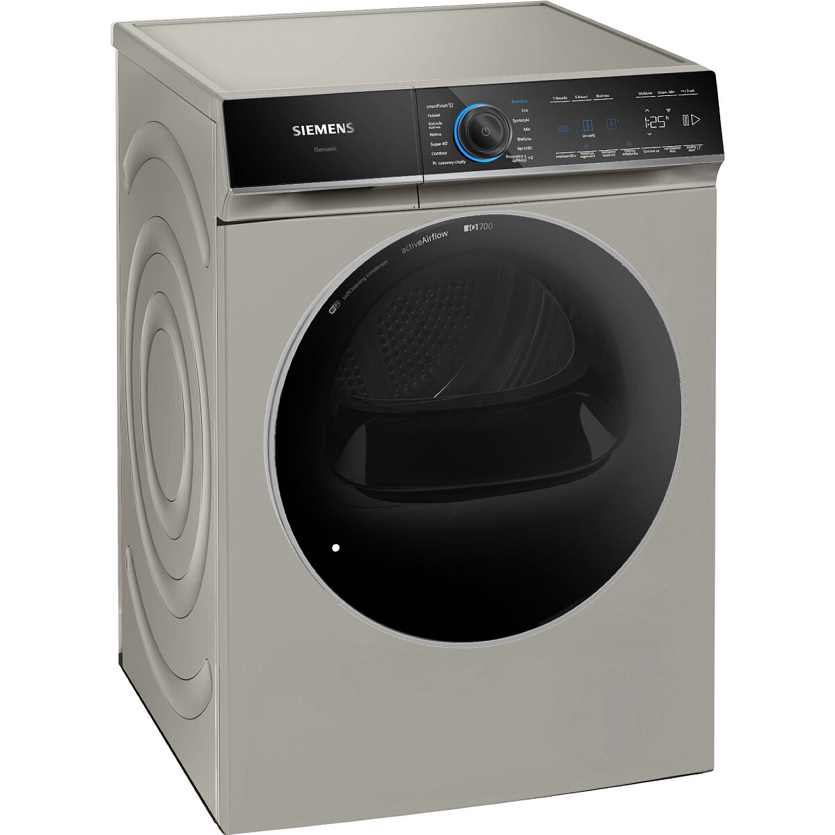 - Programy specjalne do suszenia: Programy z aplikacji, Bawełna, Pościel, Koszule/Business, Bawełna Eco, Delikatne, Ręczniki, Program parowy smartFinish, Mix, Outdoor, Program do welny, Super 40, Syntetyki, ciepły Program czasowy