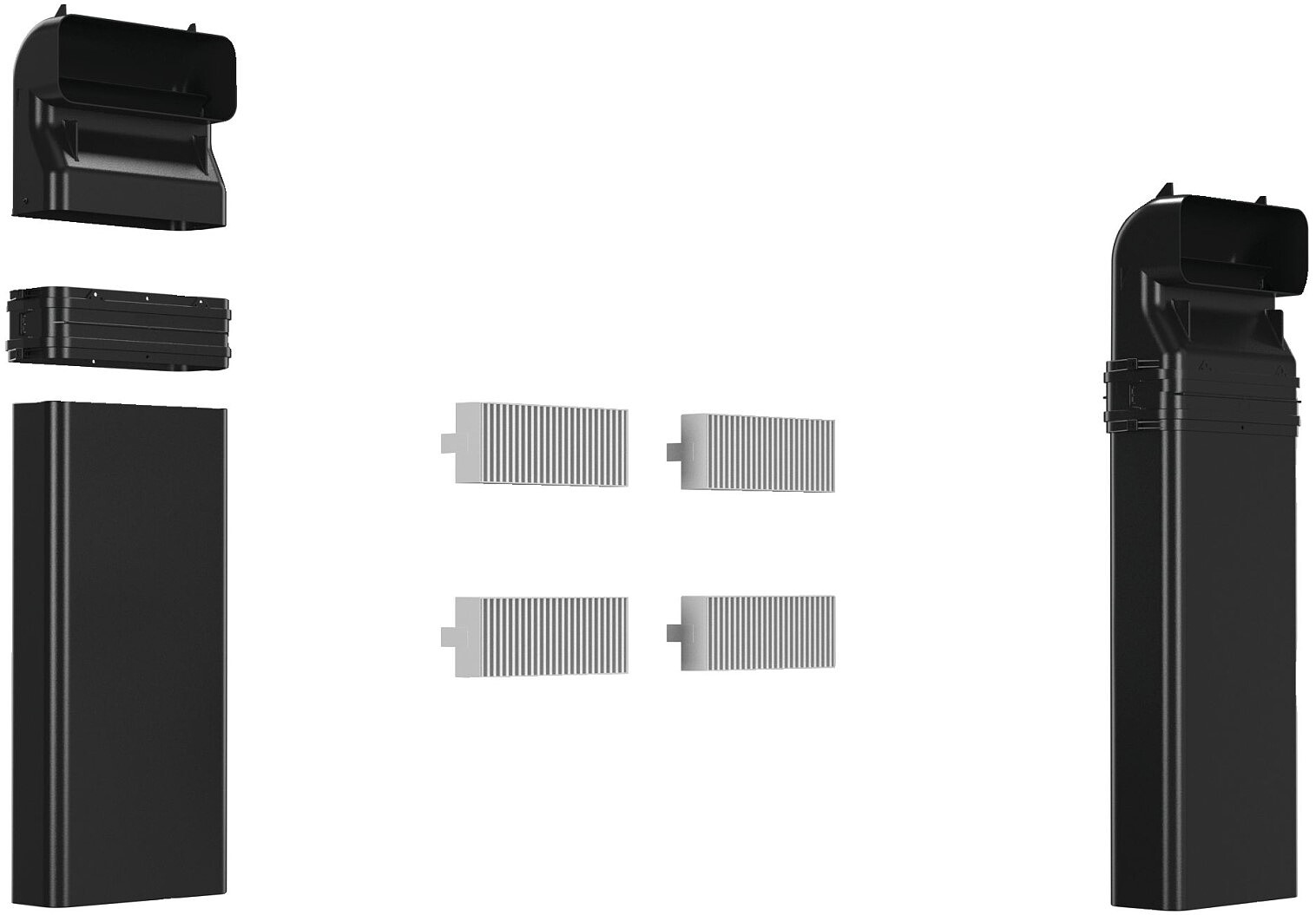 Załączone wyposażenie4x Wysokowydajne filtry akustyczne, 1x Kolanko 90° “S” kanał płaski pionowy (część męska), 1x Łącznik (część żeńska) do łączenia z częściami męskimi, 1x Kanał powietrzny prosty (część męska, 500 mm)