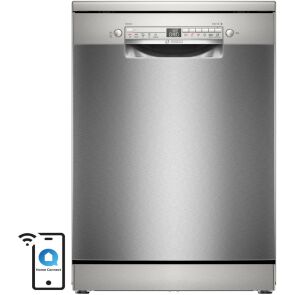 Zmywarka Bosch Serie 2 SMS2HVI02E Inox o szerokości 60 cm to nowoczesne urządzenie o pojemności 14 kompletów naczyń, idealne do dużych gospodarstw domowych. Wyposażona w minutnik, funkcję zdalnego sterowania przez Home Connect oraz energooszczędną technologię EcoSilence Drive zapewnia cichą i wydajną pracę.