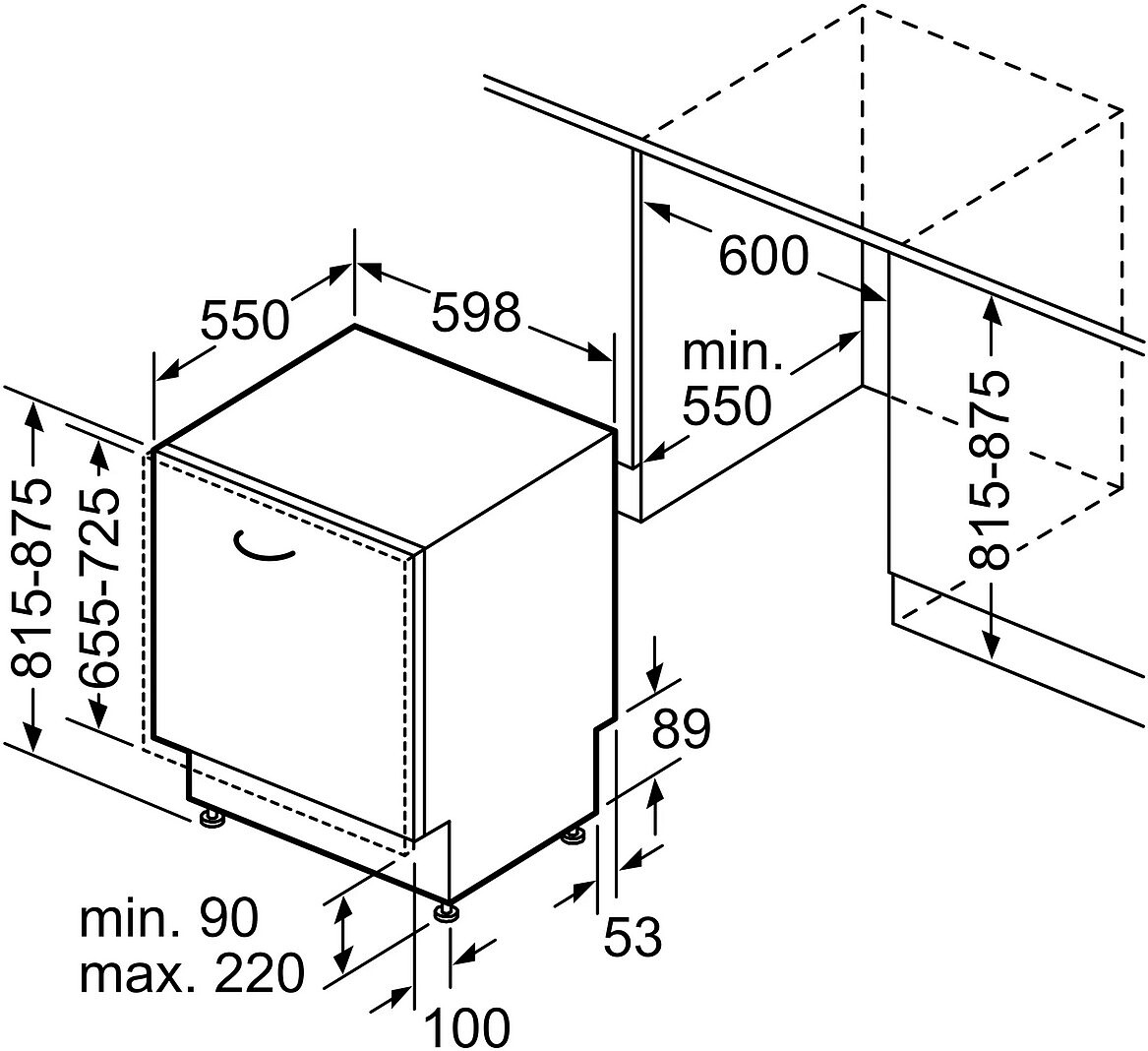 - Głębokość instalacyjna (mm): 550 mm