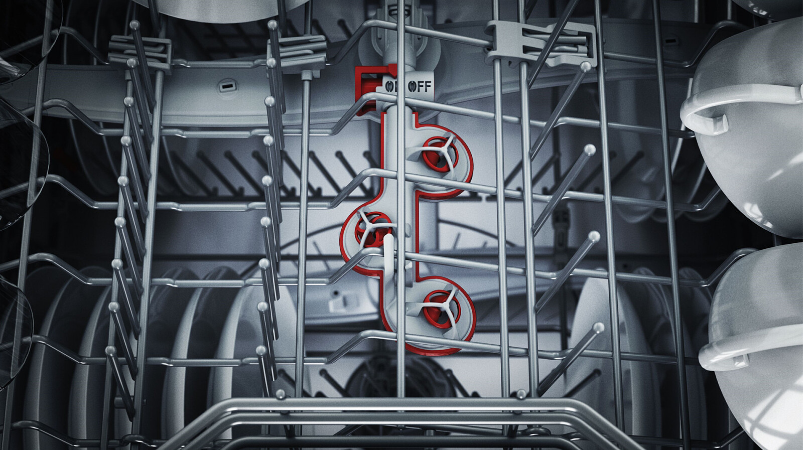 Pożegnaj na dobre zaschnięte resztki z naczyń: strefa ExtraClean w górnym koszu poradzi sobie z tym znakomicie. Bez dodawania większej ilości detergentów czy zwiększania temperatury. Trzy rotujące dysze wytwarzają silny strumień wody zapewniając naczyniom dodatkowe, intensywne płukanie. Do aktywacji funkcji wystarczy nacisnąć przycisk, a zmywarka sama zadba o perfekcyjny efekt.