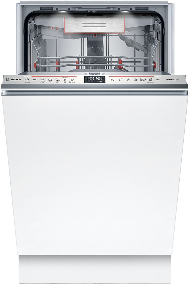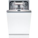 Zmywarka Bosch Serie 6 SPV6ZMX17E to wąska, zintegrowana zmywarka o szerokości 45 cm, idealna do mniejszych kuchni. Dzięki technologii Zeolith zapewnia doskonałe suszenie przy niskim zużyciu energii, a system Home Connect umożliwia zdalne sterowanie za pomocą aplikacji. Cicha praca i programy automatyczne gwarantują komfort oraz skuteczność zmywania.