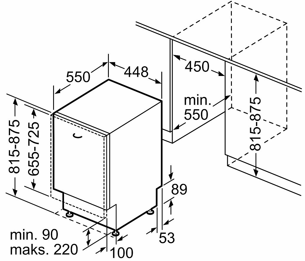 - Głębokość instalacyjna (mm): 550 mm