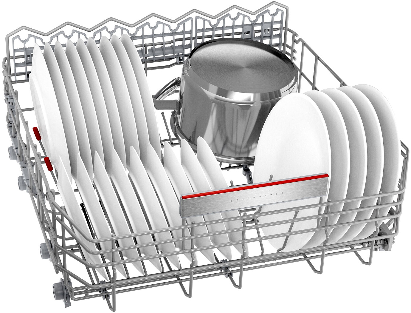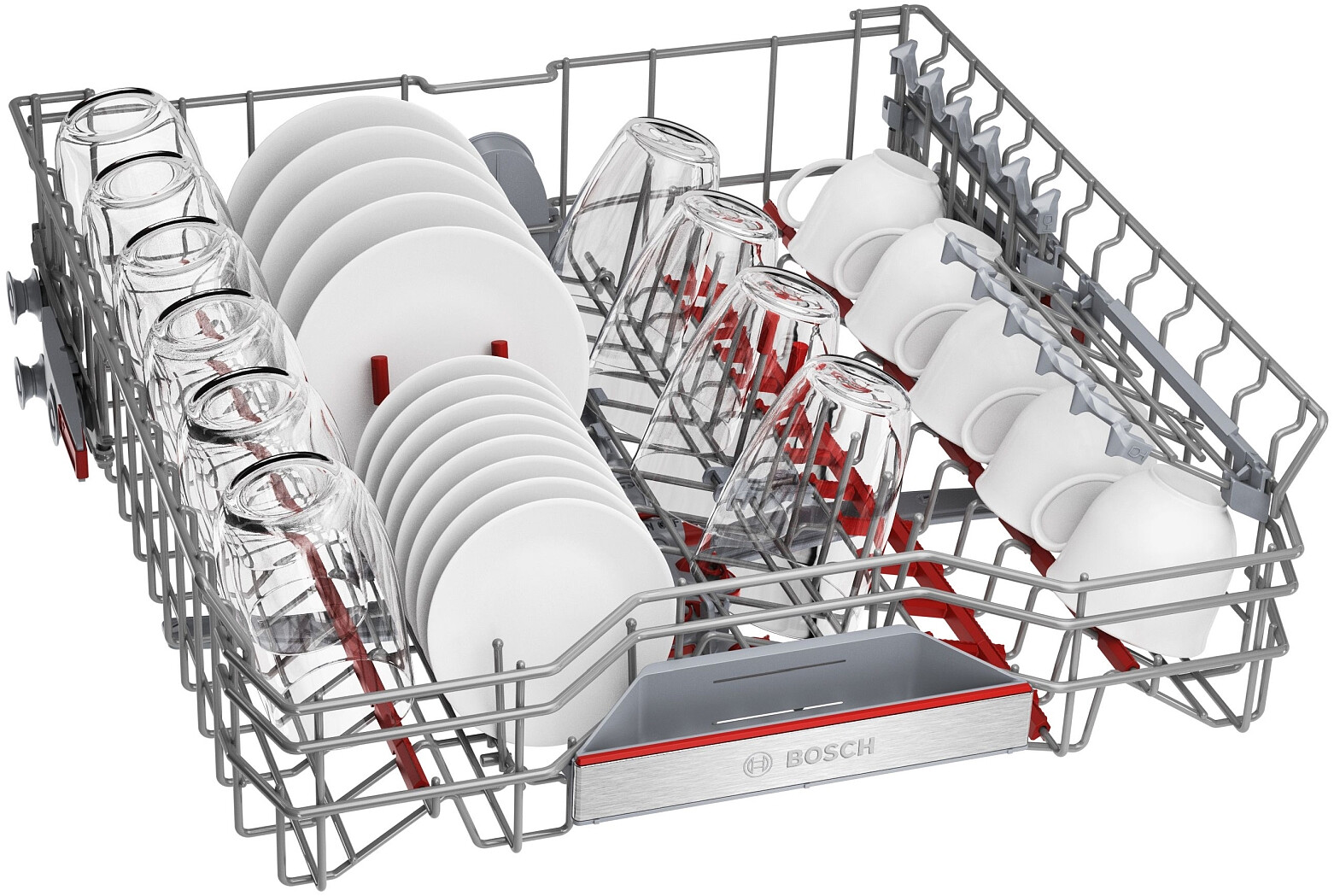 System regulacji położenia górnego kosza Rackmatic, służy dopasowaniu wnętrza do aktualnych potrzeb. System pozwala zmienić ustawienie kosza na różnych wysokościach, a wybraną pozycję można łatwo zmienić, nawet gdy kosz jest pełen. Dzięki temu możesz dostosować wnętrze do swoich potrzeb nawet dla bardzo wysokich talerzy w dolnym koszu, czy wysokich kieliszków czy kufli w górnym koszu.