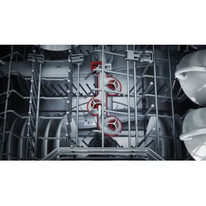 Najlepsze zmywarki mają w środku jeszcze więcej miejsca: szuflada Vario3 Pro zapewnia przestrzeń na duże akcesoria, takie jak np. łyżki wazowe. Ponadto boczną stronę szuflady można opuścić tym samym stwarzając przestrzeń na mniejsze naczynia - nawet filiżanki do espresso. Trzeci poziom eliminuje potrzebę montowania koszyka na sztućce , dzięki czemu masz więcej miejsca na talerze w dolnym koszu. Przyciski regulacji ruchomych elementów w szufladzie zostały oznaczone czerwonym kolorem, dzięki czemu wygodnie dostosujesz je do potrzeb.