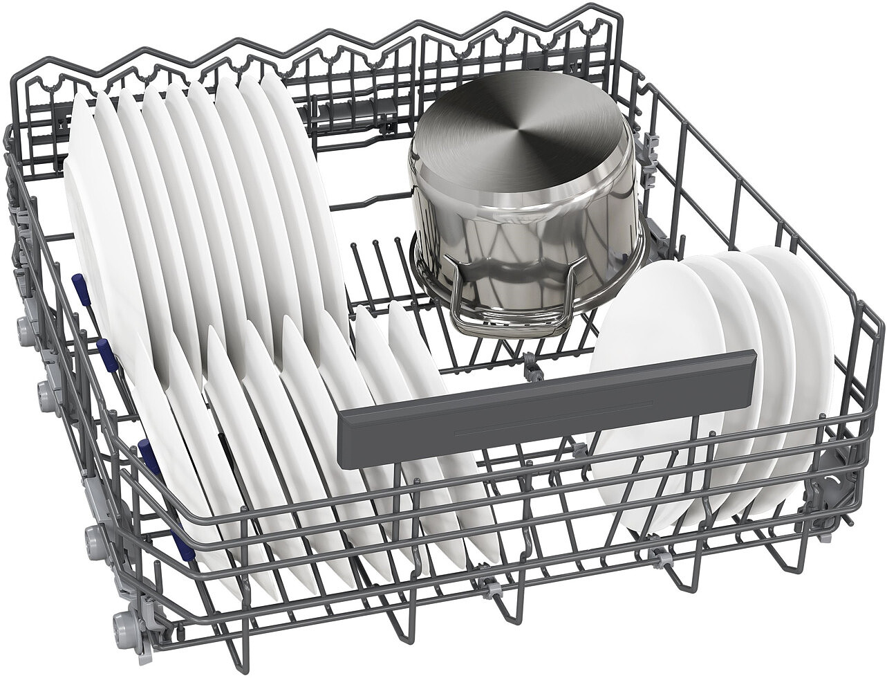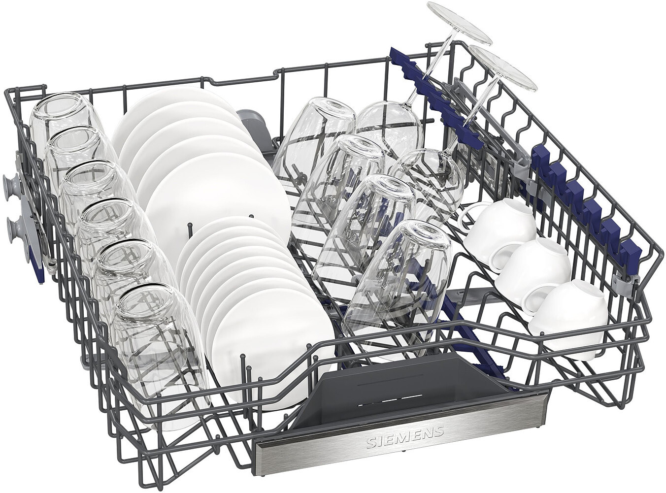 Gwarantowana wygoda i szybkie mycie: nowe kosze flexComfort z eleganckim wzornictwem oferują dużą swobodę w zagospodarowaniu przestrzeni i przy wyjmowaniu naczyń. Każdy talerz, garnek, filiżanka, czy kieliszek znajdzie szybko swoje miejsce w koszach flexComfort w zmywarce Siemens. Dzięki antypoślizgowym zabezpieczeniom, możesz umieścić cenne szkło w swojej zmywarce Siemens bez wahania. Dodatkowo, rolki o płynnym wysuwie ułatwią załadunek i wyjmowanie.