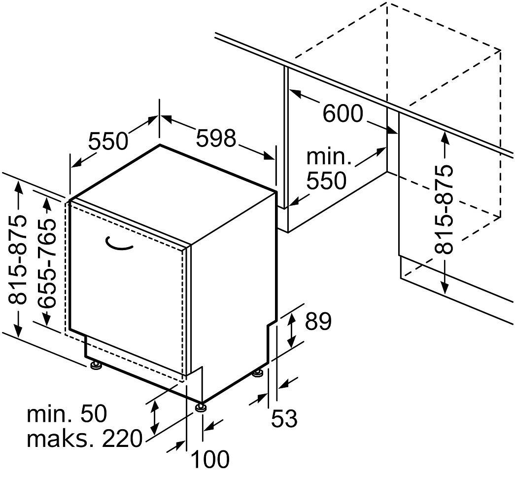 - Głębokość instalacyjna (mm): 550 mm